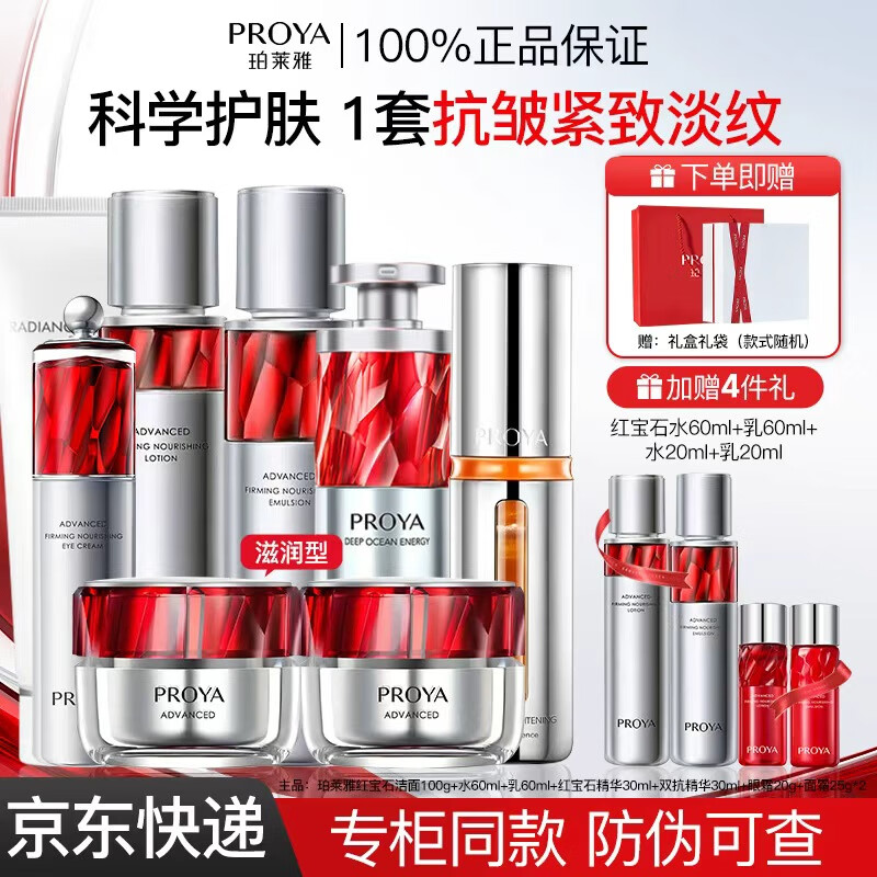 包邮 珀莱雅(PROYA)红宝石水乳套装护肤用品双抗精华补水保湿紧致抗皱礼盒送女友老婆 【四件套】水+乳+精华+滋润霜
